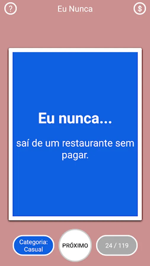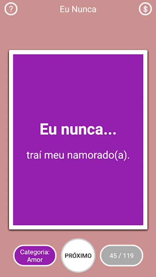 The game contains spicy phrases (+18), about love, among others. All are free! You can even choose which categories of phrases you want to use.