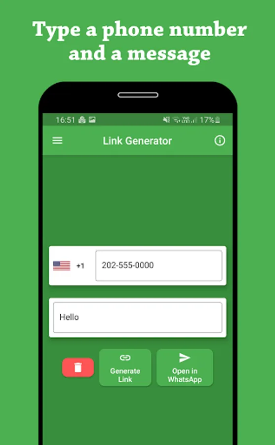 The "Link Generator for Whats" application has the main objective of helping you to generate the link of your WhatsApp number in order to share it with your contacts. You can use this link in your Instagram profile bio or in your email signature, for example. That way, people will add you to your contacts in a simple and quick way!