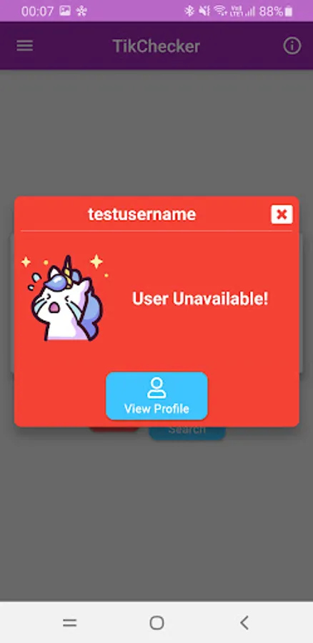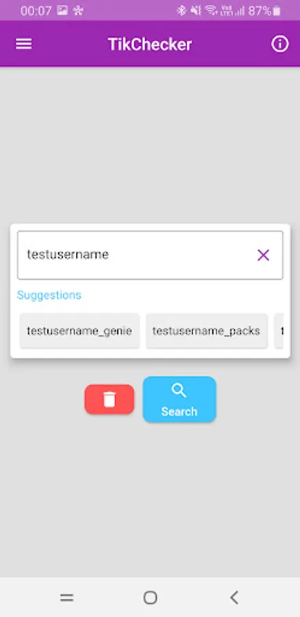 Using the app is very simple. Type an username in the text field and click on "Search" button. The app will show if the username exist or not. If it does not exist, the app will list some suggestions of usernames that you can try.