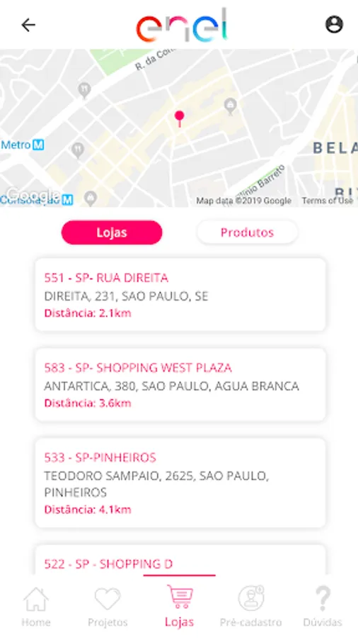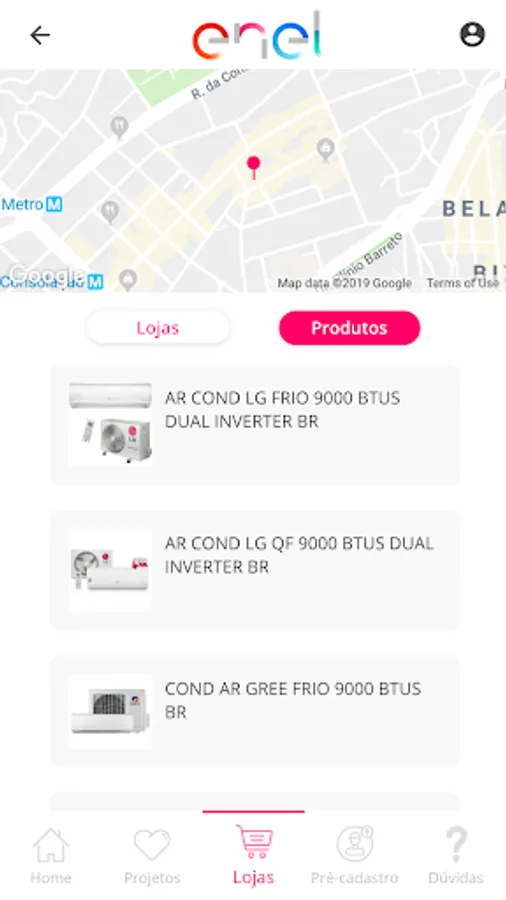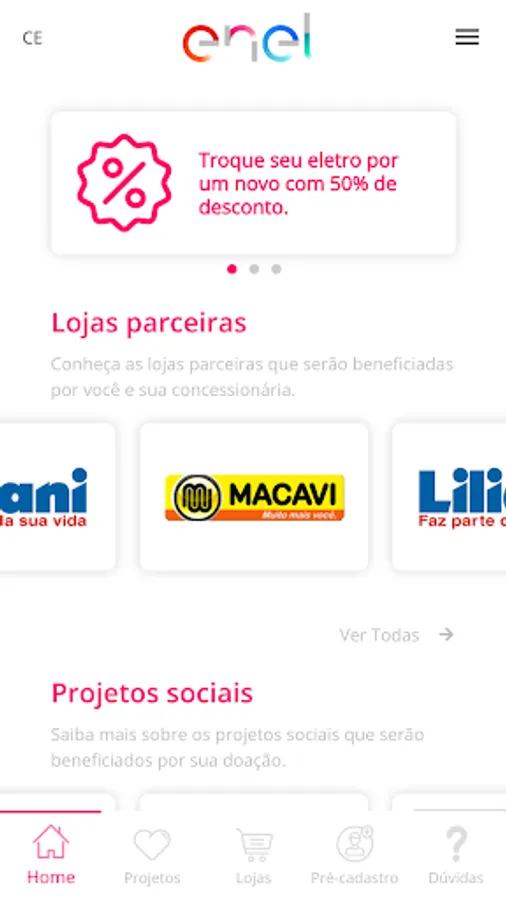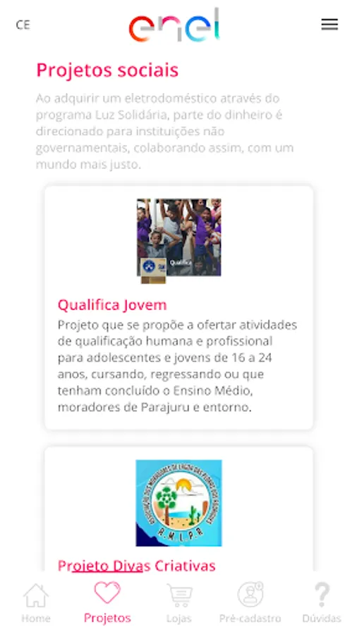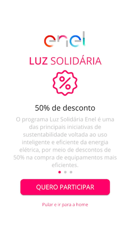 The Luz Solidária Enel app provides information about the program, participating stores and available equipment at 50% discounts.