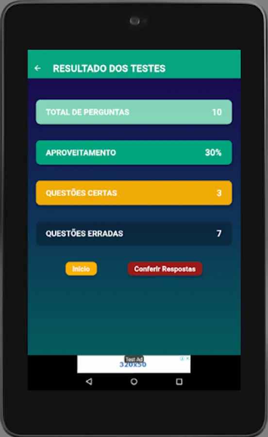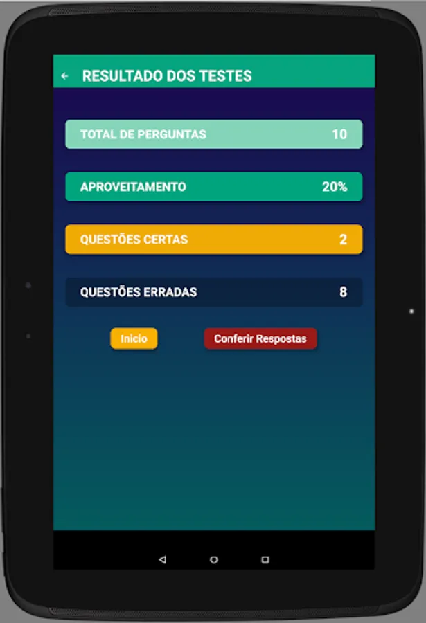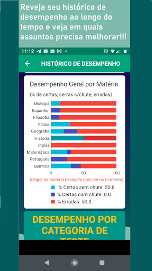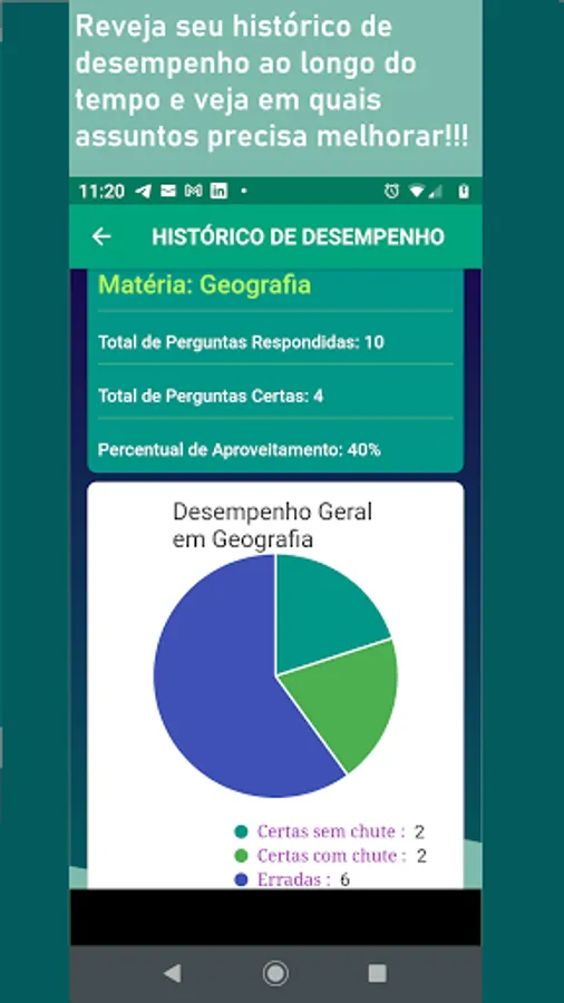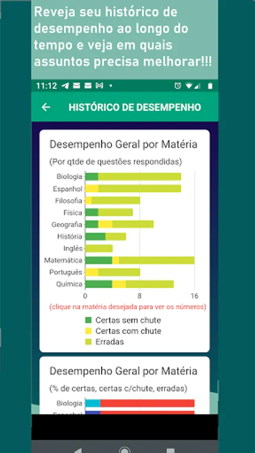 You have a track of all your results over time for each of the four study modes, which helps you control time, identify which subjects need reinforcement and better direct your studies.