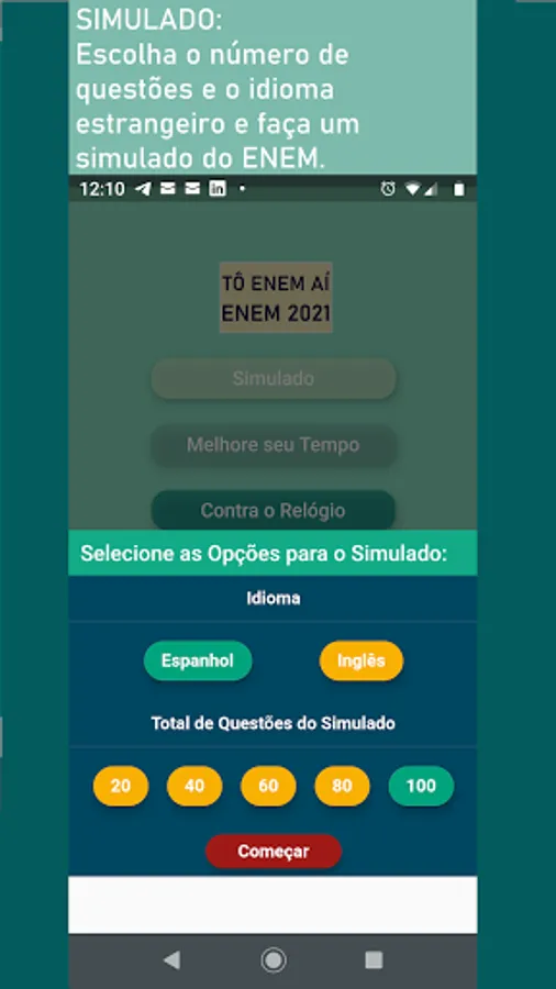Tô ENEM Aí is an app designed to assist you in your studies and preparation for ENEM and other entrance exams. In it you will find more than 1000 questions from old ENEM exams to answer and evaluate your knowledge.