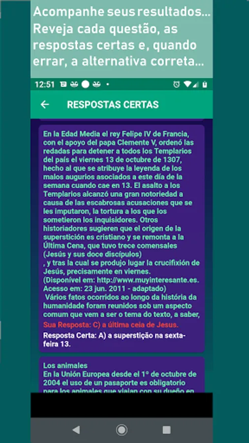 With each round of answered questions, you check your performance and the correct answers, as well as the right alternatives for the questions you got wrong.