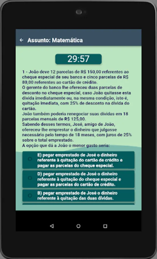 The alternatives contain the letter of the question, but are always presented in random order, so that you are not conditioned by the order of the alternatives and focus on identifying the right answer.
