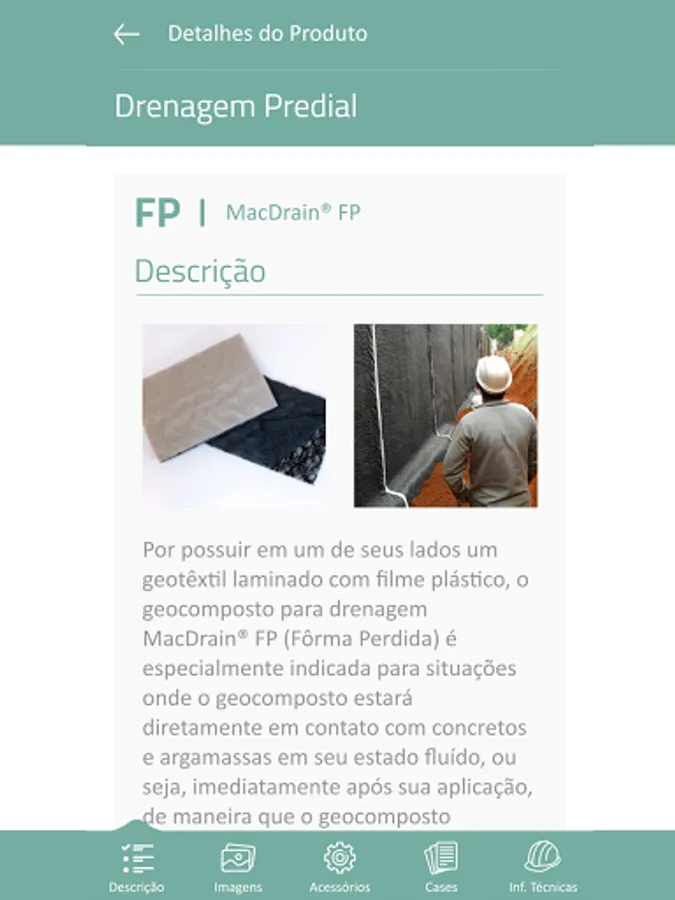 The application provides technical data, application tutorials and work cases related to drainage with the MacDrain family geocomposites (original Maccaferri).