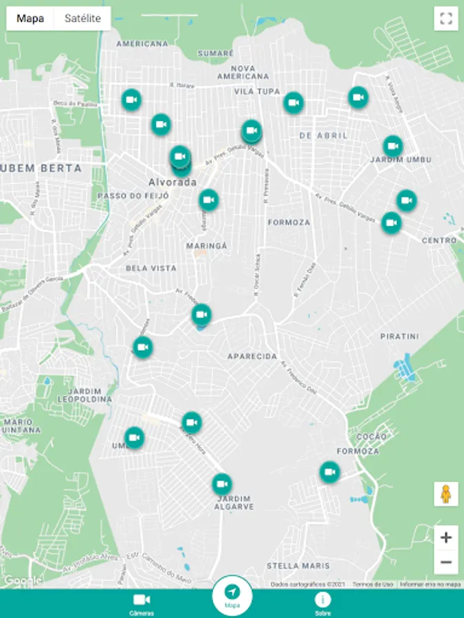 City monitoring cameras, located at strategic points of Alvorada for you to stay connected to the city.