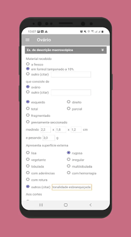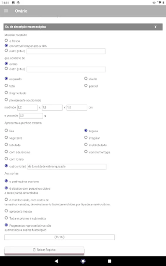 • Macroscopic descriptions through protocols consisting of several options (Radio-Buttin) that will guide the professional in a clear and fluent way