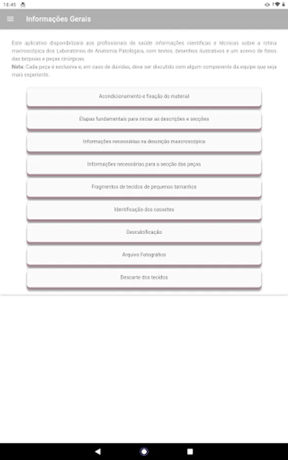 This app provides healthcare professionals with scientific and technical information about macroscopy from Pathological Anatomy Laboratories.
