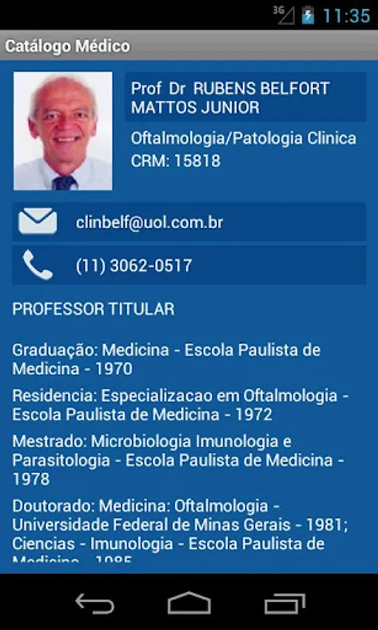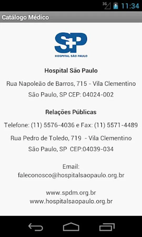 The Hospital São Paulo makes available for consultation on the mobile version of the medical records that are part of your clinical staff. The catalog gathers detailed information on specialties, areas of expertise and contacts credentialed professionals who work in the hospital.