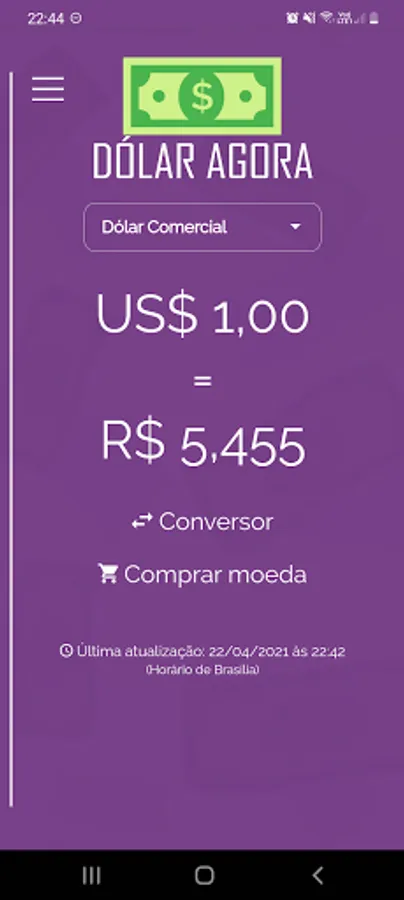 Dollar Agora was tailor-made for those who like to keep an eye on their finances and keep an eye on the currency situation. In addition to allowing you to check the current value, the application offers a series of tools that can make your life easier in this regard.
