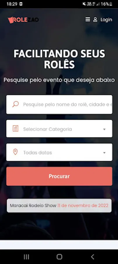 With the Rolezao app you can find and create events to get out of boredom, find events near or far from happening with different categories and styles of vibes.