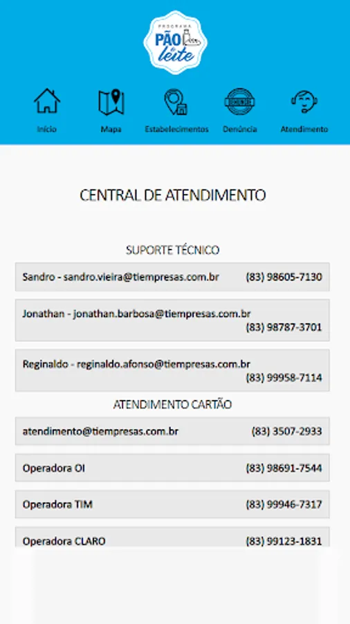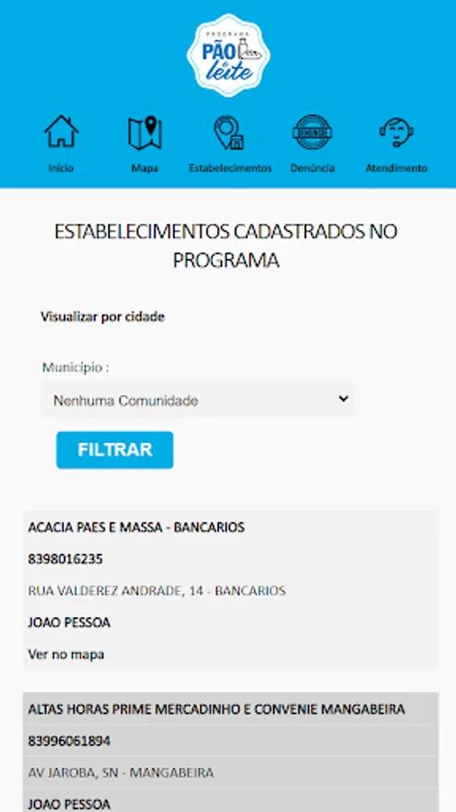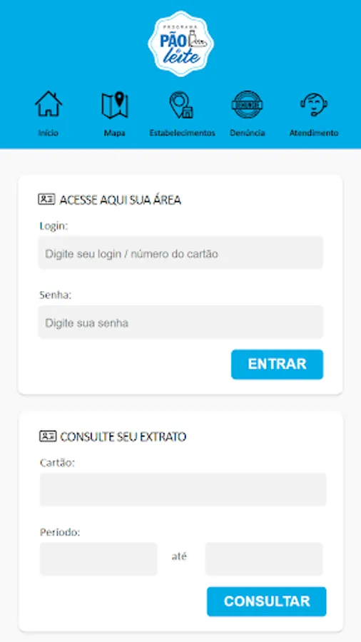 Application of the Pão e Leite program for optimized access on a mobile device, in which it is possible to access the main functions available on the portal with the same security and ease.