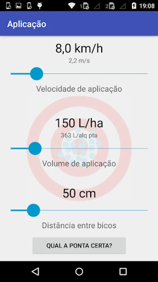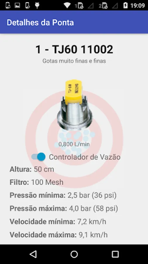 Indicates the minimum and maximum speed recommended for sprayers with flow controller, avoiding failures, excessive wear of the spray nozzles and ensuring high efficiency in the application of plant protection product.