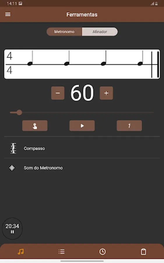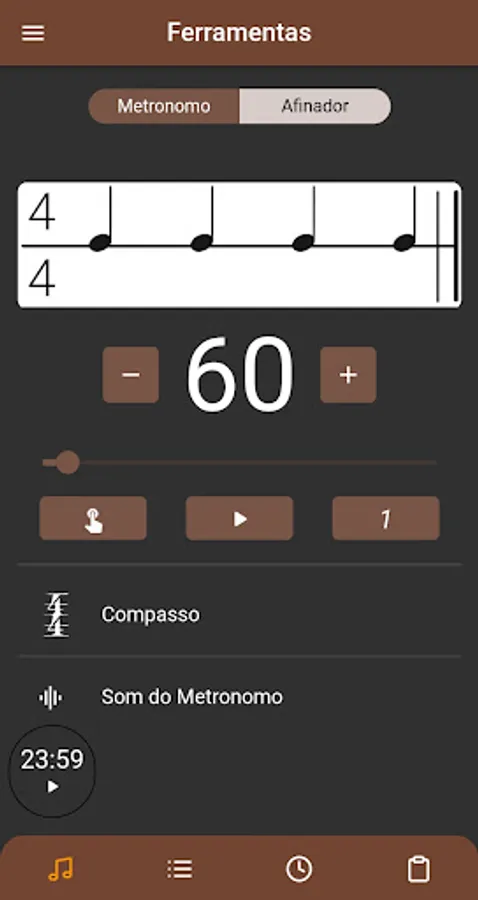 In MuDy you'll find an accurate and efficient metronome, with it you'll have access to all the basic functions of a metronome, such as tempo control, different bar and sound options.