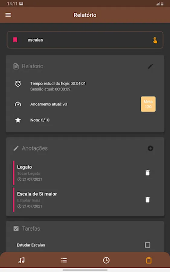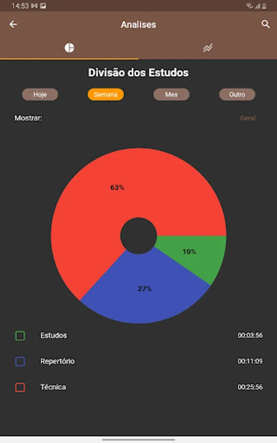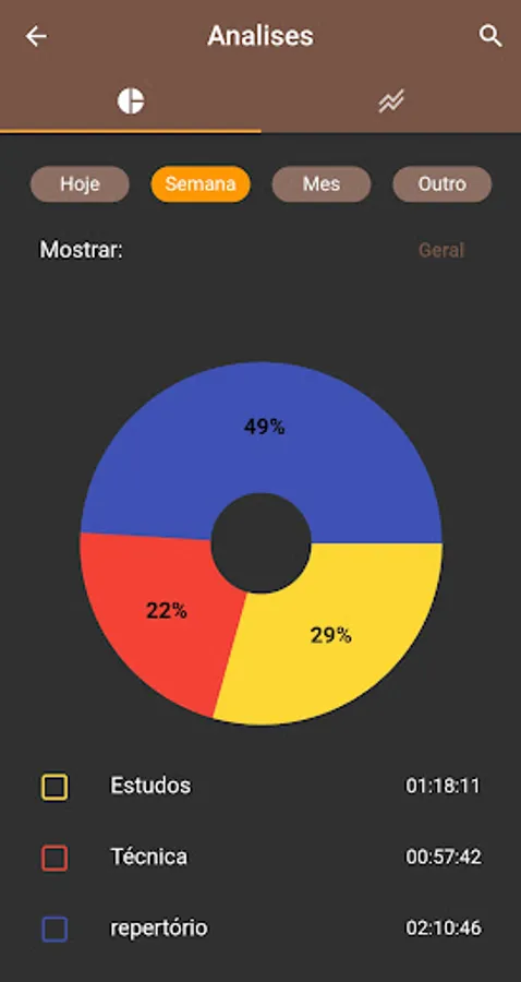 Finally, you can follow your progress in the analysis tab, there will be all the information about how much you studied and how you divided your study.