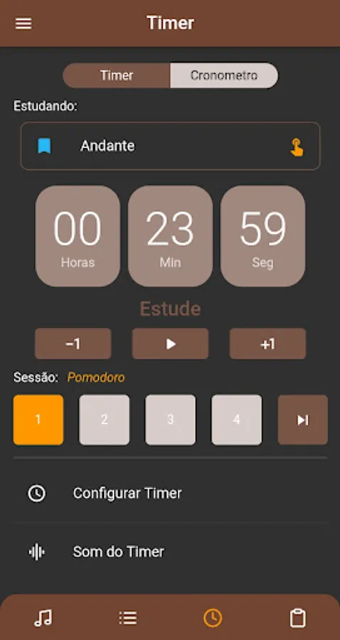 You will have a fully customizable interval timer at your disposal, in which you can program how long you want to study, how many sessions and the time of breaks. If you prefer, you can choose to use a Stopwatch, it does not need to be programmed in advance, just press play and your study will already be counted.