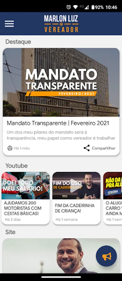 Councilor Marlon Luz in the city of São Paulo presents the first application in the country where the user will be able to interact with the mandate, either voting in polls to demonstrate his opinion or directly requesting the office to perform urban services within the city limits (slap) hole, tree pruning, lighting and rubble removal).