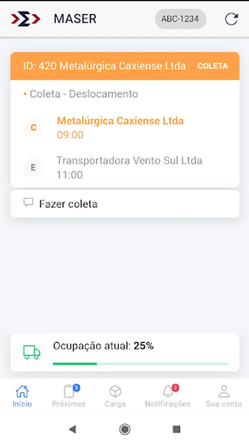 This app was developed for Maser Transportes drivers. It integrates with the company's systems, receives requests for collection and delivery.