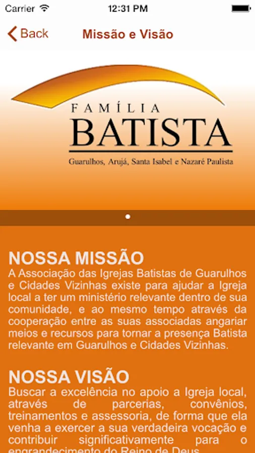 Welcome to the application of the Association of Baptist Churches of Guarulhos, Arujá, Santa Isabel and Nazaré Paulista. Our application is in several operations, including a list of all the churches of the cities, with location, integration with the news, unified agenda of Churches, the association, the upgrade of the main regional news and the Christian world, the JUBAG agenda OPBB . UFM, UMM and more.
