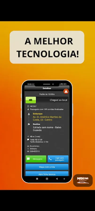 Our application allows the driver to receive new races and increase the professional's daily income.