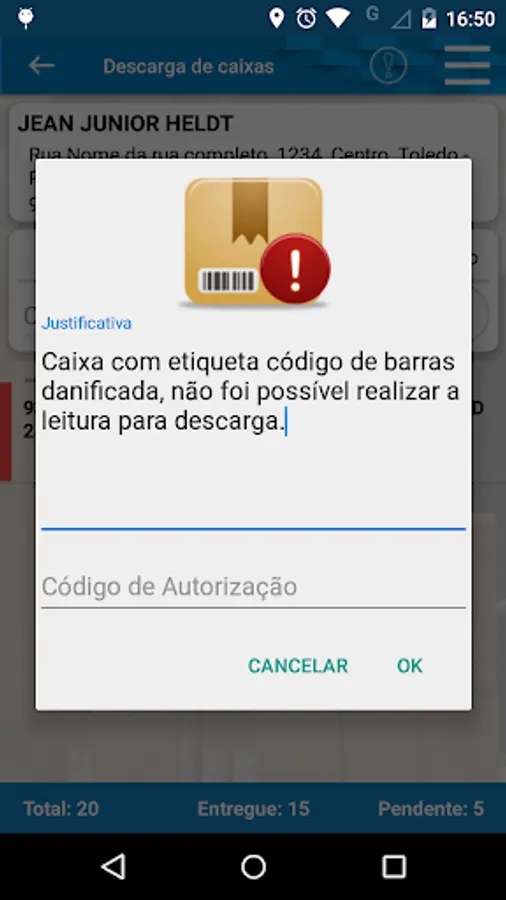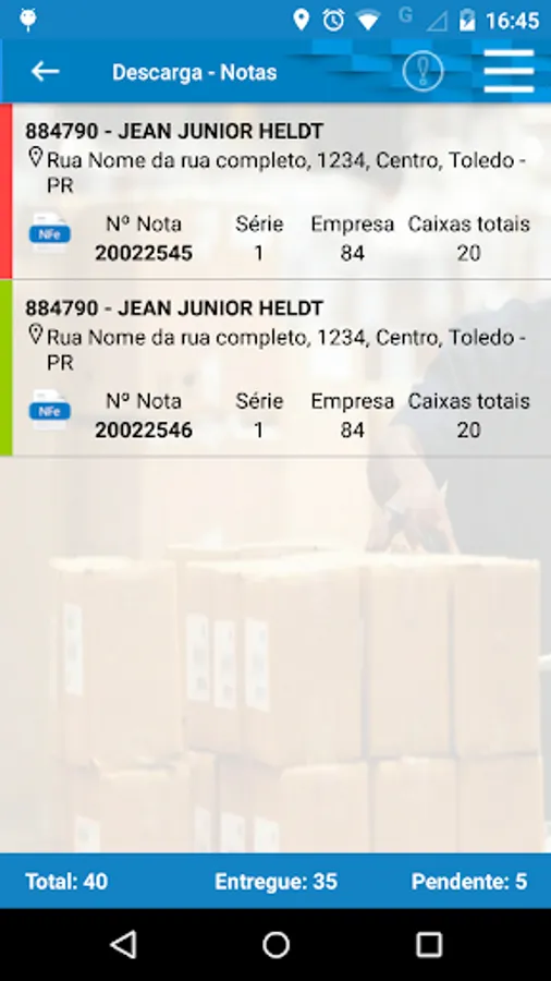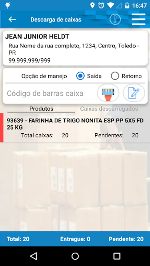 - Download and collection of boxes by barcode, with geolocation tracking.