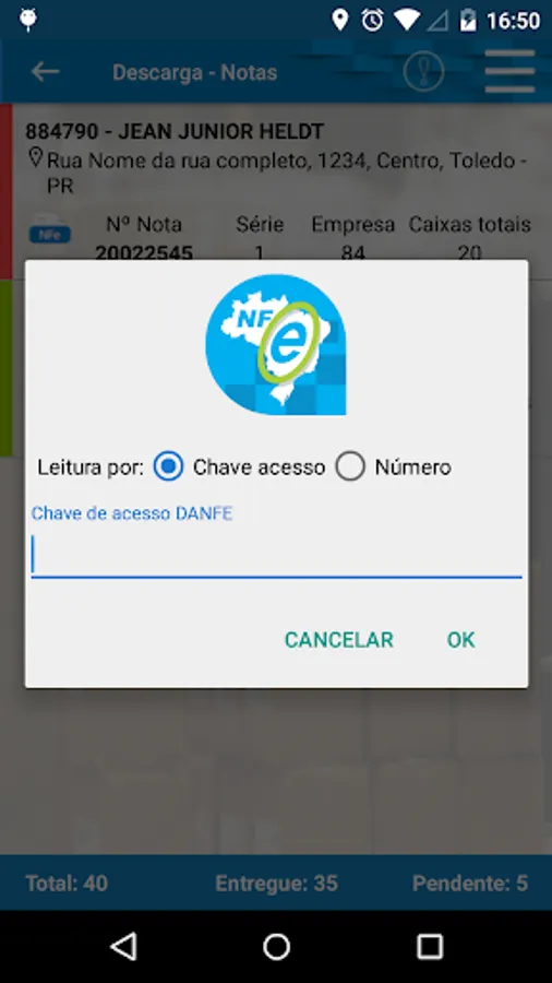 - Reading of DANFE bar code and boxes.