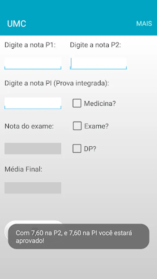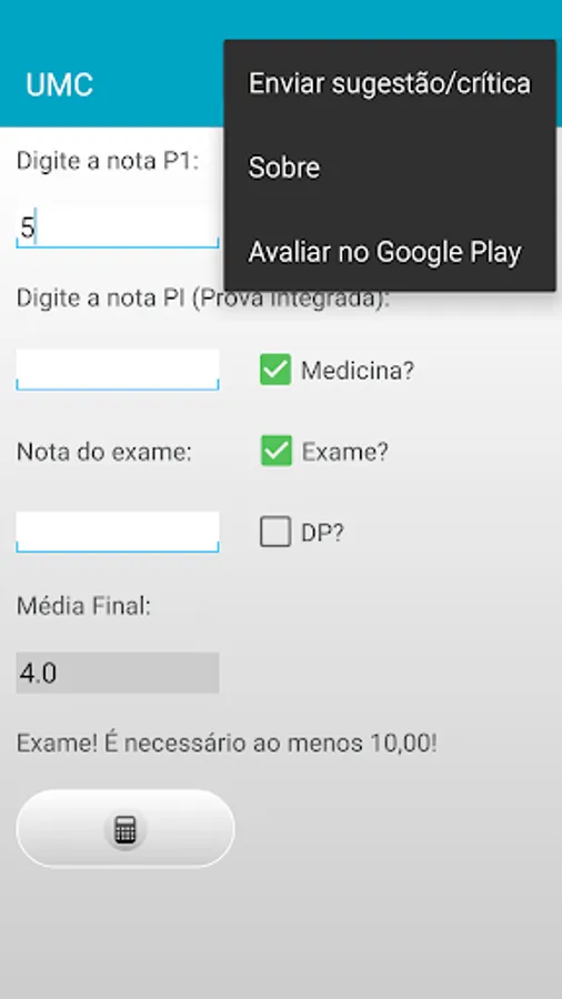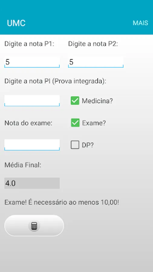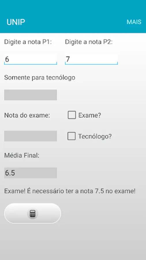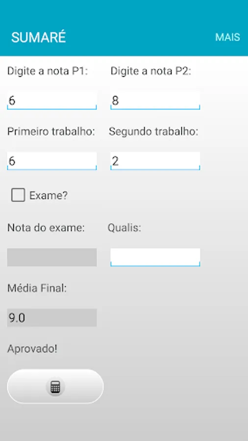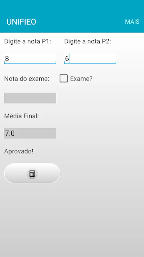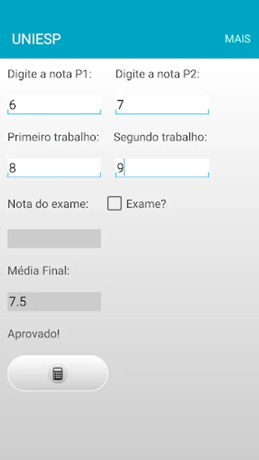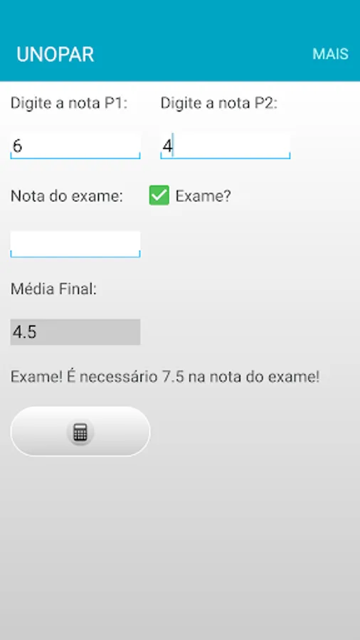 Placing your first note, the application automatically tells how much you need to be approved. In addition to calculating grades you need to get the exam, and is always being updated with new universities or changes in the form of notes of calculation.