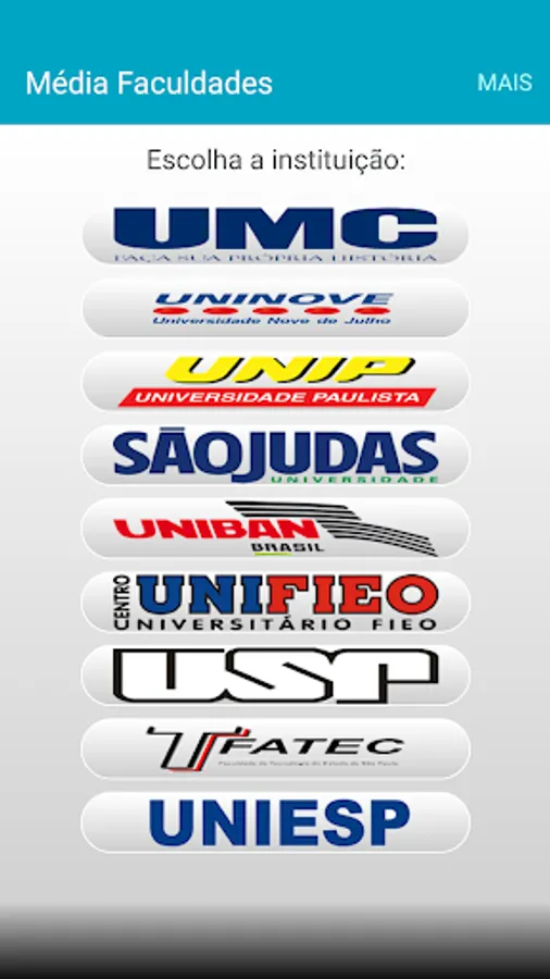 Do the calculation to know how much notice you need to pass the courses of your college or university in a practical and simple way! The formulas are ready for UMC universities, Pvt, USP, Unifieo, Uninove, St. Jude, Uniban, Fatec, UNIESP, Unopar and Sumaré.