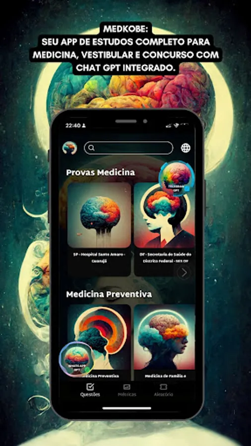 INTEGRATED GPT CHAT: The leading study app with built-in GPT Chat. With a wide variety of categories and over 150,000 medical residency questions from across Brazil, Medkobe is the perfect study app for students at all levels. Download now and study smarter and more efficiently!