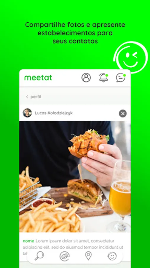 Through the app, the meetat user can post on the app's social network, enjoy friends' posts and get likes. In addition, it is possible to exchange messages with the meetats you had matched!