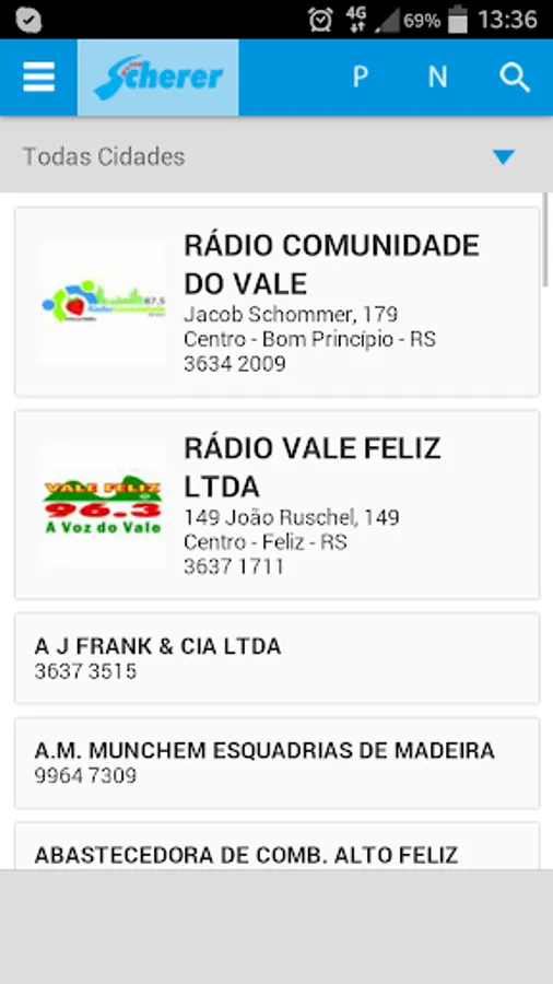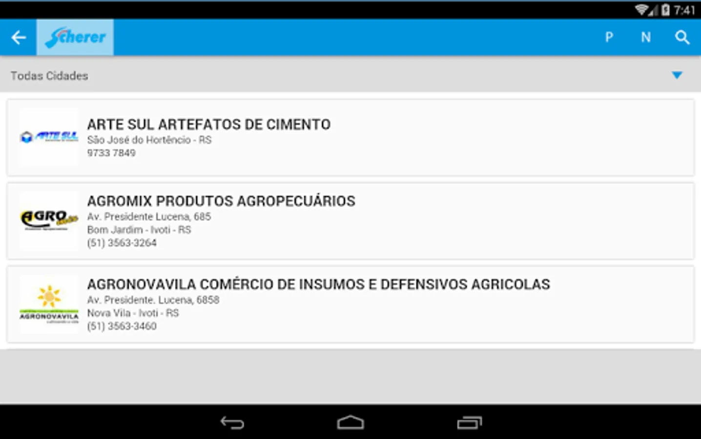 Mobile GUIDES SCHERER version, with it you can consult at any day and time every phone companies from Scherer Guides Cities of Ivoti, Two Brothers, President Lucena, Lindolfo Collor, São José do Hortêncio, Reuter Morro and Santa Maria do Herval . Direct check of your system: pizzerias, restaurants, shops, snack bars, ice cream shops, fish markets, pharmacies, clinics, dentists, pet shop, veterinary, schools, construction materials, electrical, and other establishments. The best services and shops you find here.