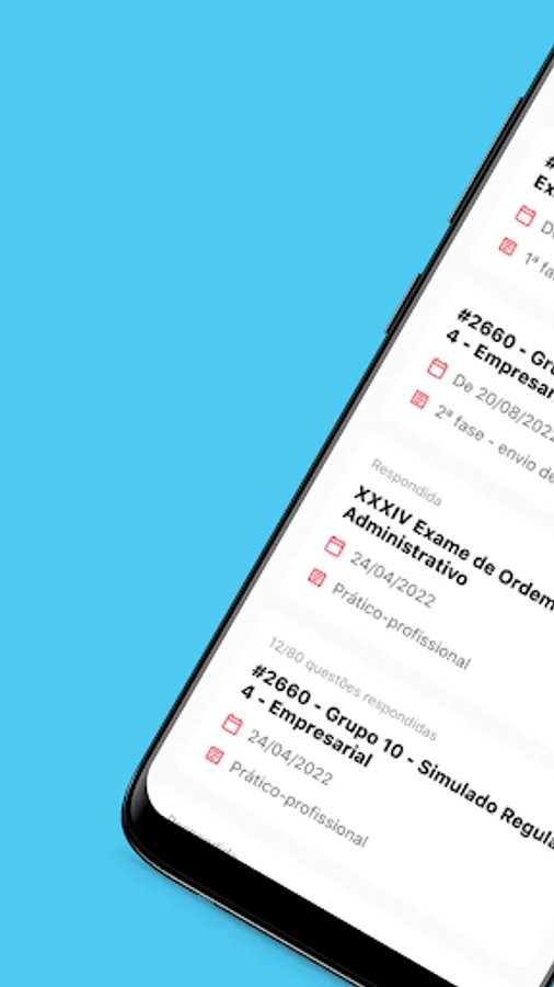 In summary, our application is the ideal tool for anyone who wants to efficiently prepare for the 1st and 2nd phase of the Bar Examination. With access to a wide variety of questions, comments and explanatory videos, organized by categories and themes, you will be able to study in an organized and dynamic way. Don't waste any more time and download our app right now!