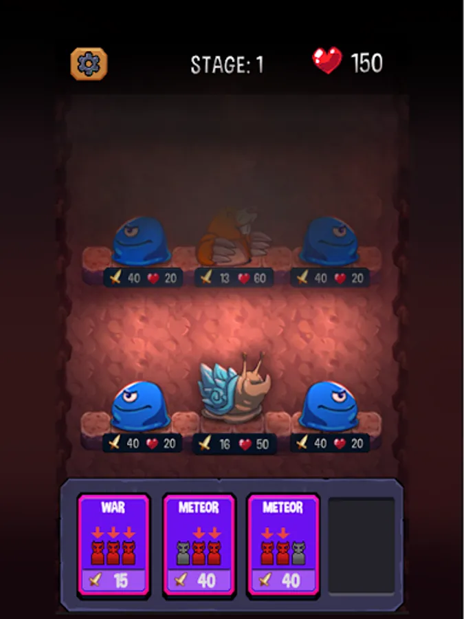 - Choose a hand of cards between defense, attack and heal!