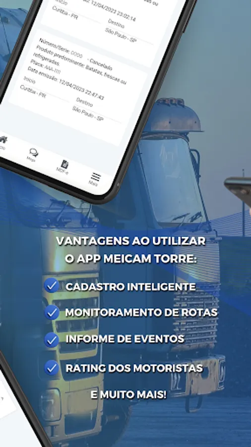 Self-employed truck drivers, producers and shippers, with MEICAM Torre, you can follow and receive information about the progress of goods transport. The App also informs important events along the way.