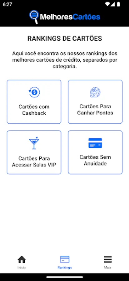 Want to choose the best credit card for you? Check out our exclusive rankings with the best cards with no annual fee, to earn miles, access the VIP room or receive money in the form of cashback, all constantly updated by our editors so you can compare, choose and conquer your new credit card with the best benefits!