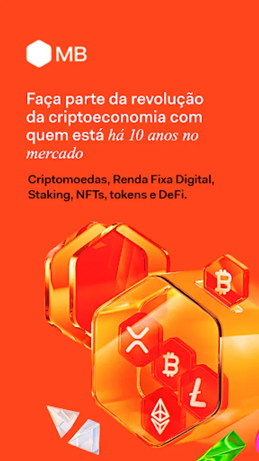We arrived at your app store, but we've been revolutionizing the crypto economy for 10 years! And now, you can buy cryptocurrencies with MB by making just one Pix, without leaving your bank's app.