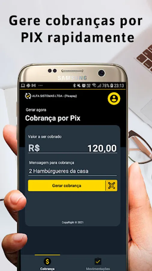 With our app, sellers charge and are notified at the same time the payment is made by the customer.