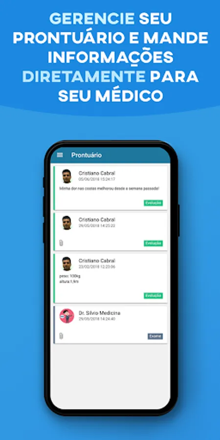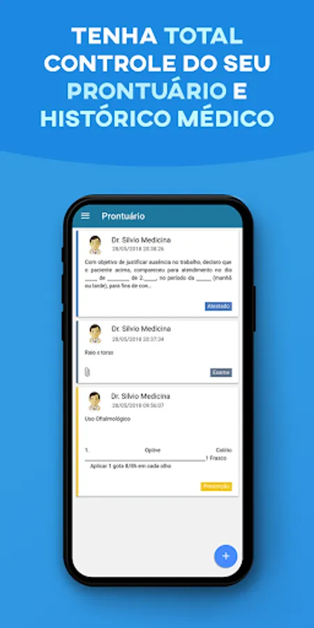 Electronic medical record containing the entire history of the registered patient, prescriptions, certificates and evolution of treatments.