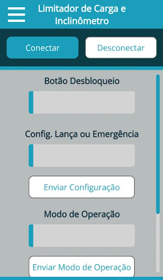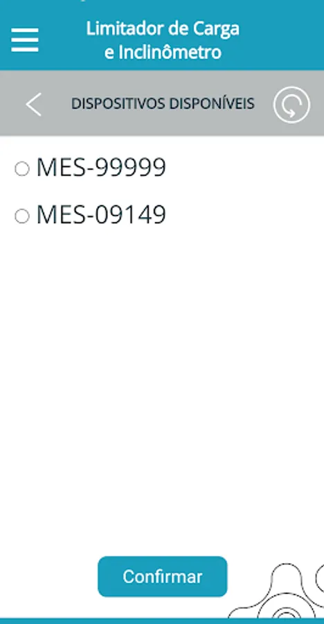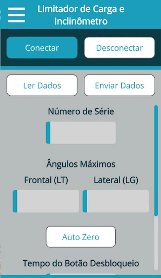 Application used to configure via Bluetooth the equipment responsible for delimiting the lifting of loads greater than the truck's load table and monitoring the inclination of the same at the time of loading, thus optimizing the work of the munck and providing greater security in the process.