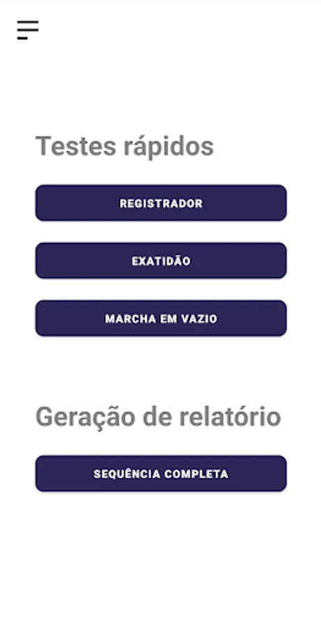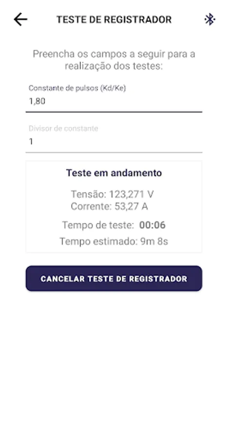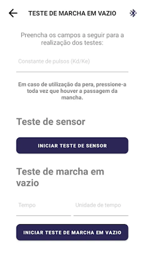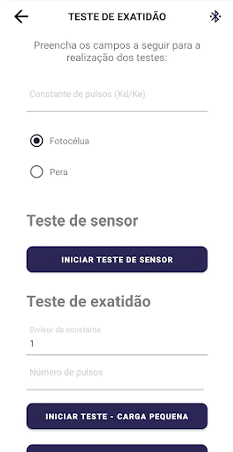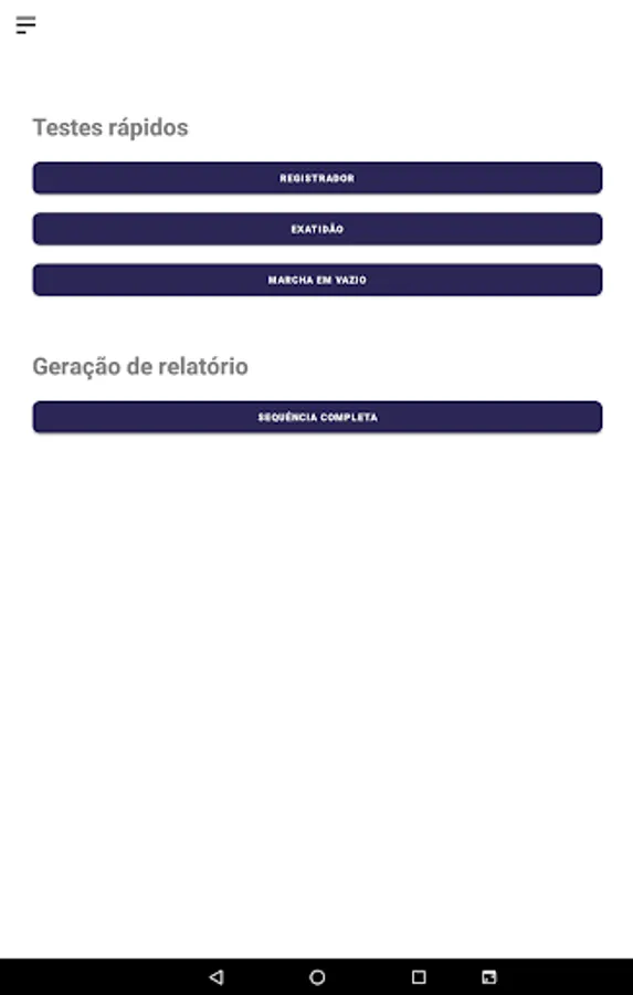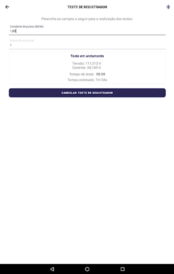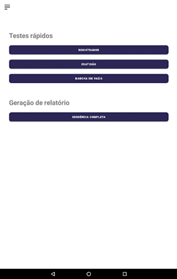 The interface of the equipment with the user is through this application, which communicates via Bluetooth with the "Single-phase Calibrator - IDF", performing the tests configured by the user.