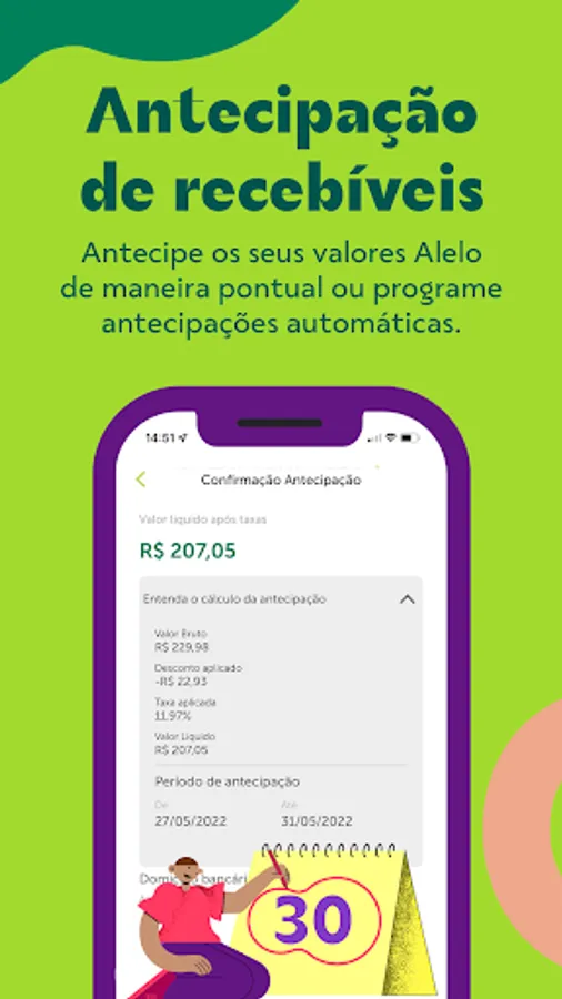 - Request the anticipation of Alelo receivables in a timely or scheduled manner;