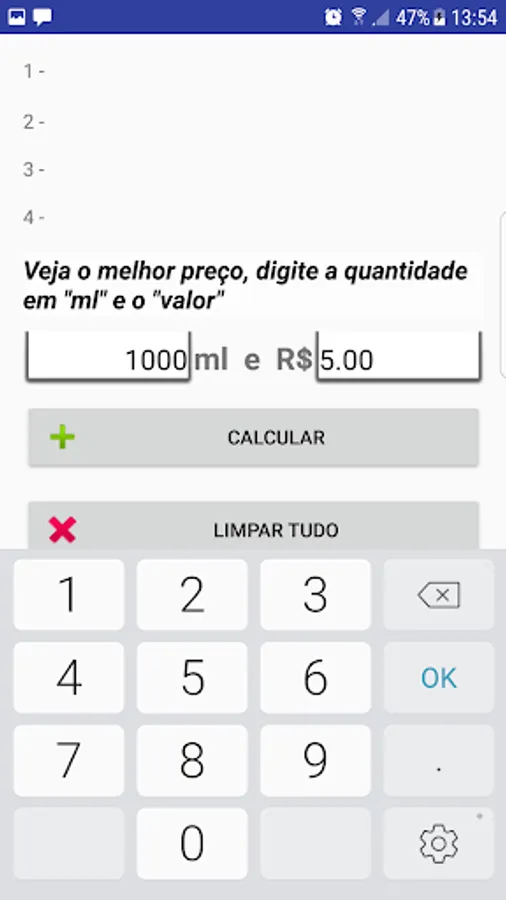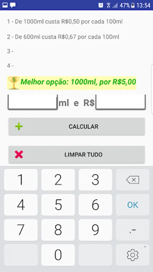 It also serves to calculate the lowest price of any other liquid just by entering the volume and price.