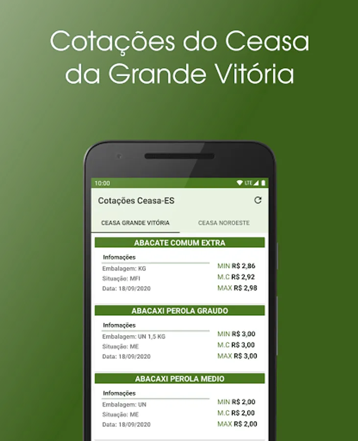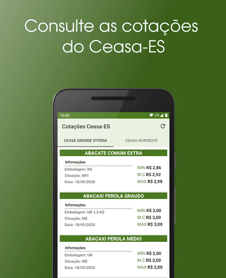All data available in this application were taken from the daily bulletin available on the official website of Ceasa-ES.