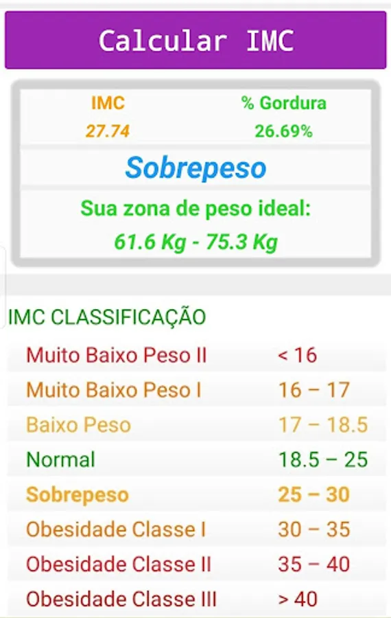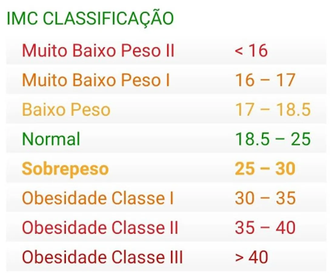 BMI is an index whose normalized intervals allow you to situate your physical condition. There are 5 main ones: