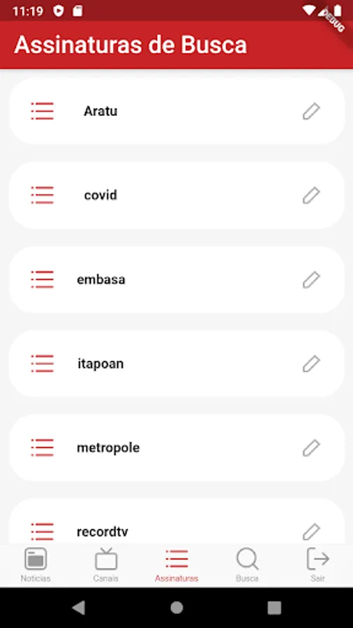 Through the application it will be possible to view all the news that have been monitored for the keywords in the last seven days.