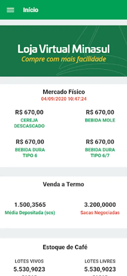 With so many technological resources available today through smartphones, it's not justified to take a lot of time to solve elementary everyday issues, that's why Minasul wants you, cooperative, agribusiness, with information in the palm of your hand. AgroApp Minasul, a new product whose usability should be its biggest attraction.