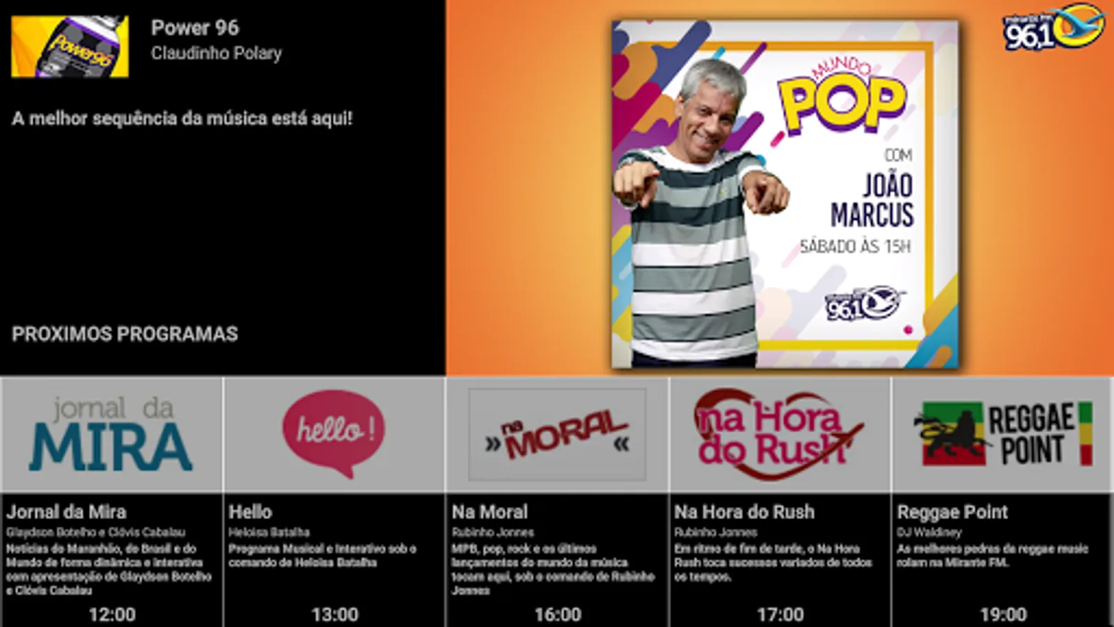 Following the world of music, fashion, entertainment, technology is what moves the waves of the Mirante FM radio and feeds the daily challenge of entertaining and informing. With a program that includes national and international music led by a team of experienced and attentive speakers, Mirante FM consolidates itself, daily, as the radio that plays what you want to hear.