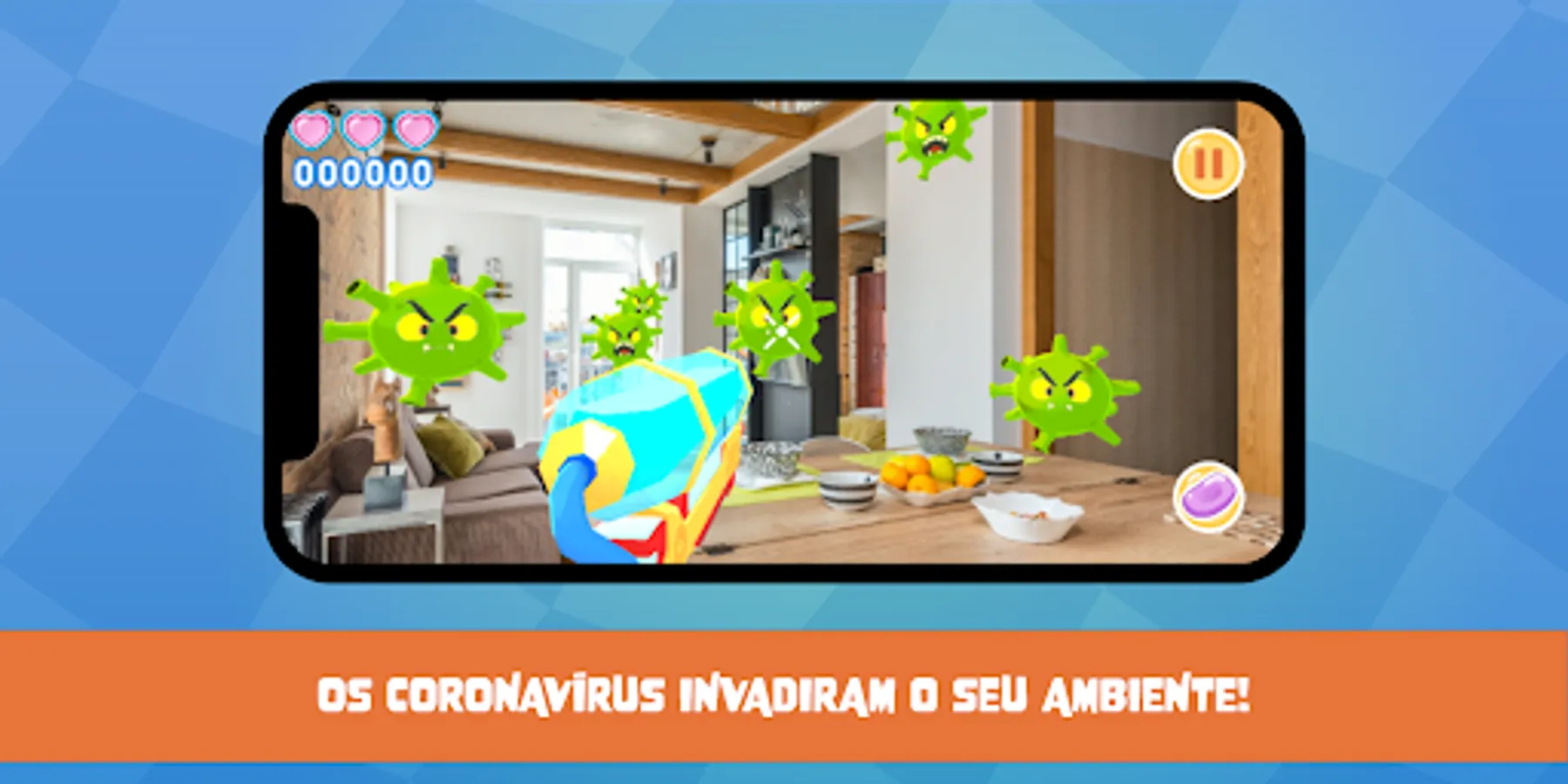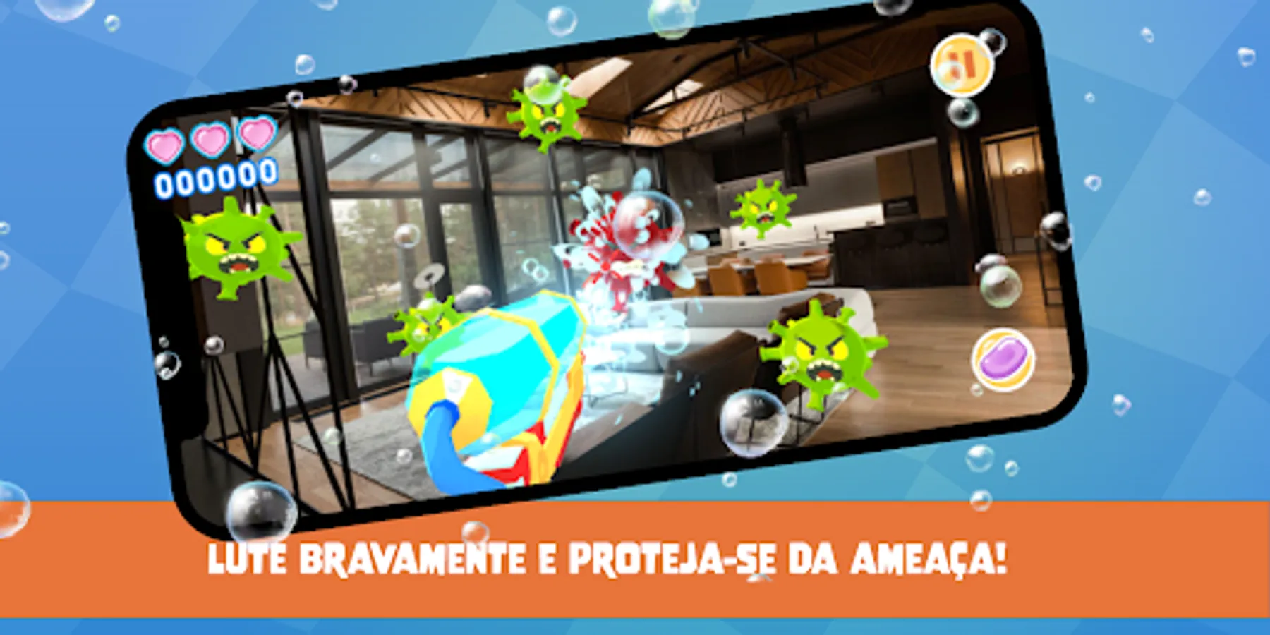 In this new adventure of The World of Augustus, you'll have to use your soap gun to defeat the viruses that will appear in your environment in Augmented Reality and try to contaminate you. Do not let this happen!