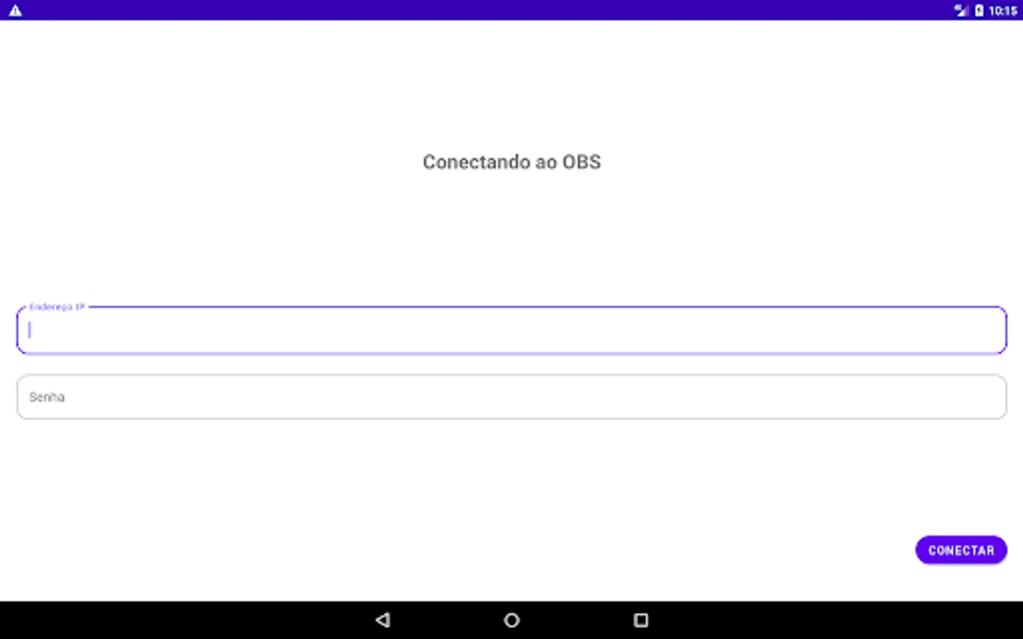 Once the App screen opens, click on the OBS option. In the "IP Address" field, enter your computer's IP address.