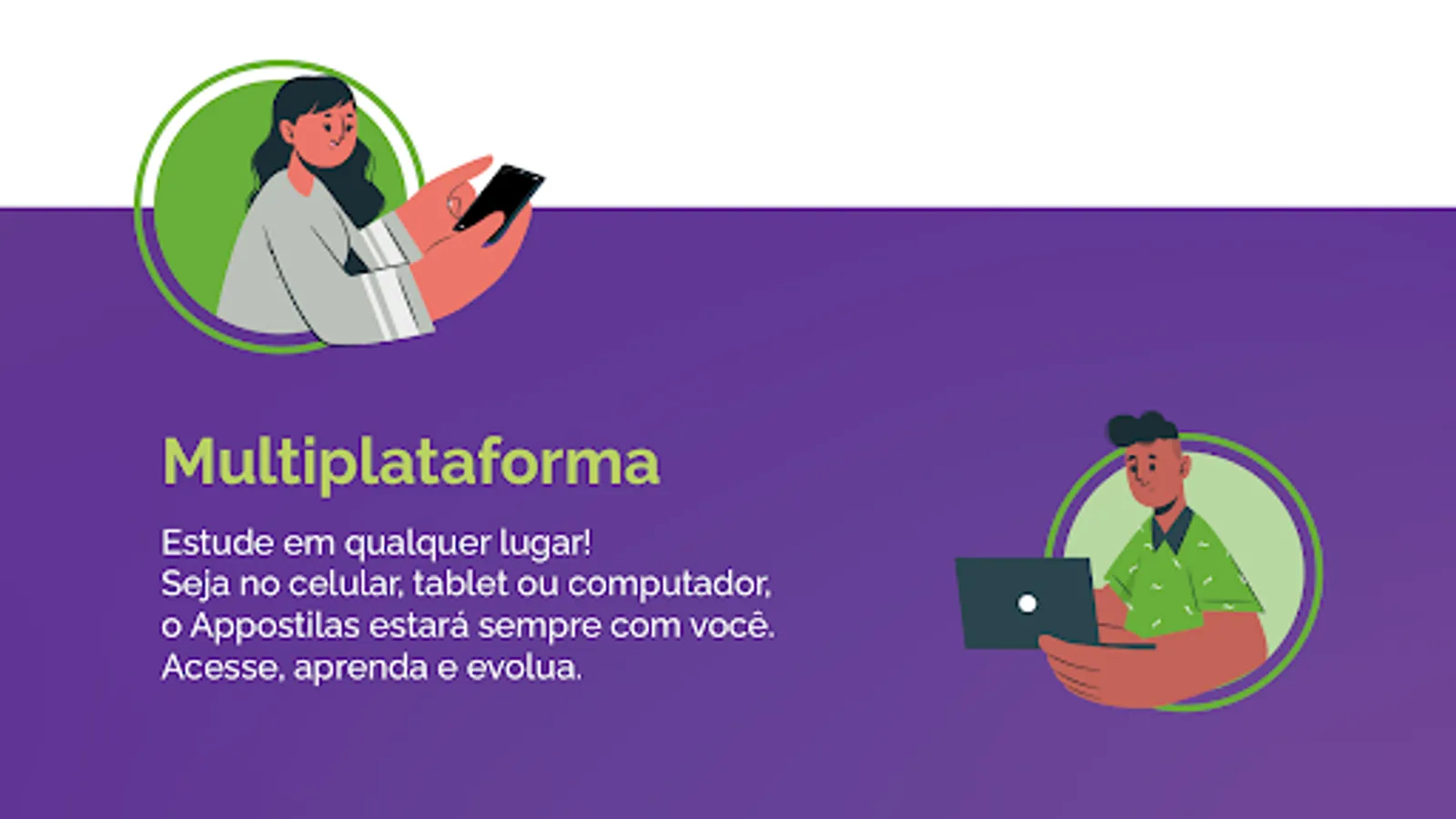 ● Multiplatform: whether on your cell phone, tablet or computer, Appostilas will be with you! Access from any device, without losing your progress in the material. 🌐
